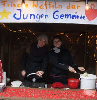 Dabei haben wir Spaß, den Tag ausklingen zu lassen. Durch Filmabende, Grillen und gemeinsame Ausflüge stärken wir unseren Gruppenzusammenhalt. Wir engagieren uns nicht nur in der Kirche mit Jugendgottesdienst oder Krippenspiel, sondern auch mit unserem Waffelstand auf dem Weihnachtsmarkt.